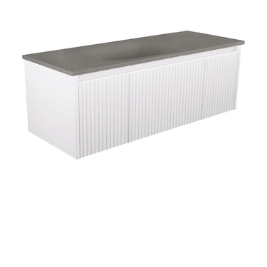 The Alina cabinet features stylish square groove fluting and a discrete pull-channel. This sleek, wall-hung design creates the illusion of space with large drawers for storage.
